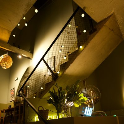 La décoration de notre établissement est un hommage vibrant à l’imaginaire de Georges Méliès. Entre rêve et poésie, l’espace est sublimé par les fresques oniriques de l’artiste Tofdru, qui habillent nos murs d’une touche surréaliste unique. Ce décor est complété par un mobilier chiné et soigné, créant une atmosphère « Speakeasy » où l’on se sent immédiatement ailleurs, tout en étant chez soi.